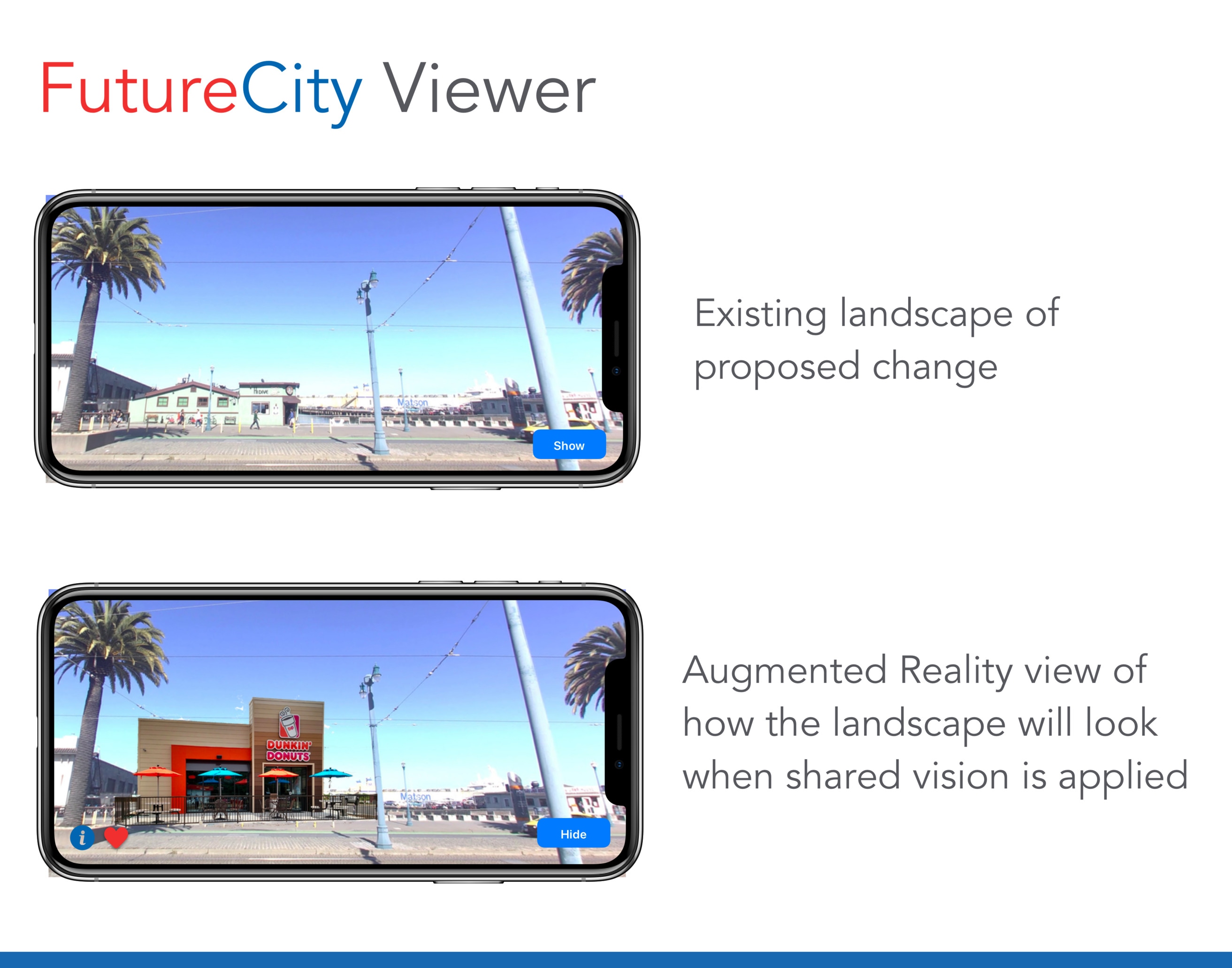 A prototype for an on-site augmented reality pop-up that invites residents to community redesign a public space. Designed and developed for IDEO CoLab.